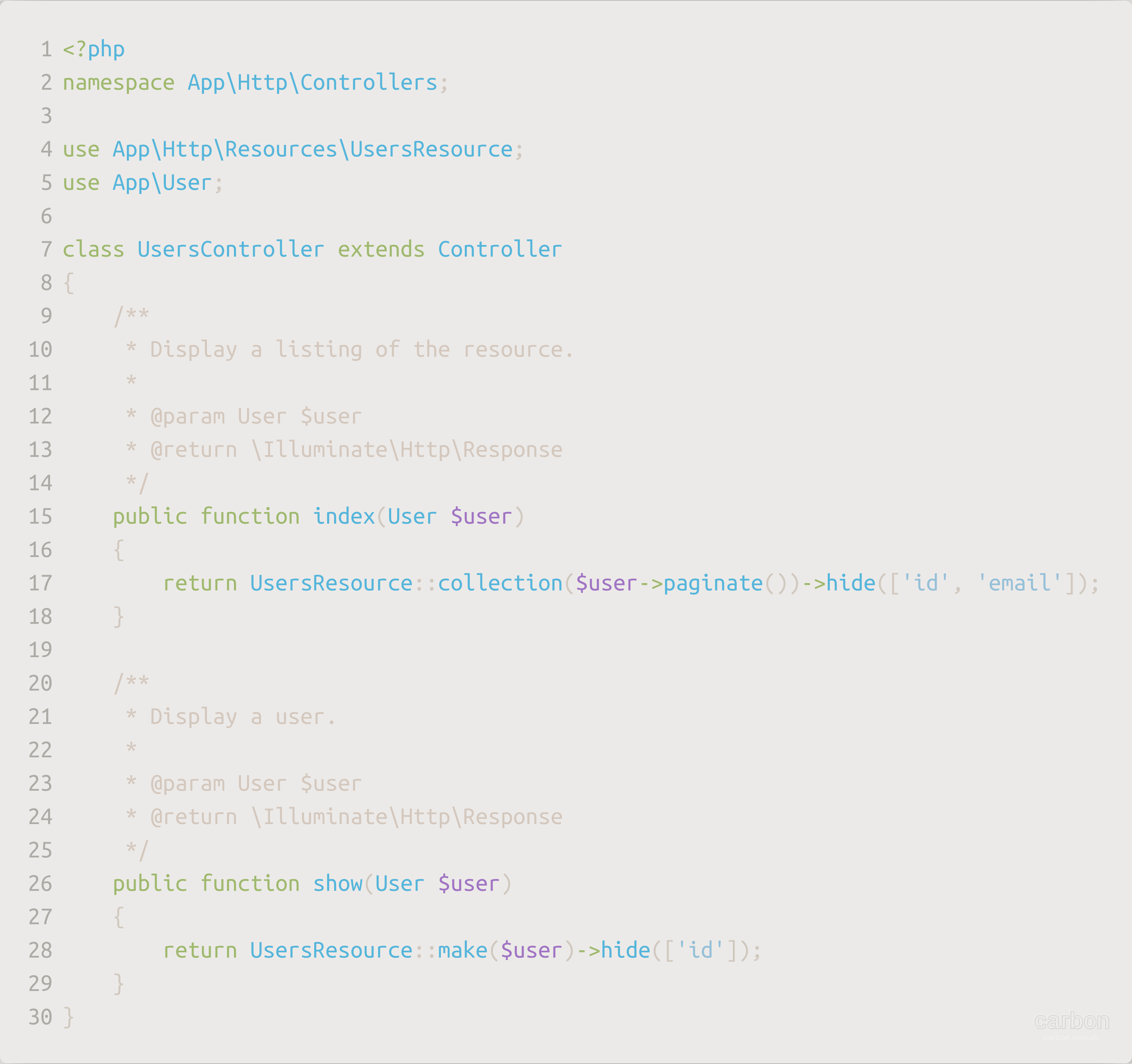 最近在Laravel Brasil社区看到一个问题,结果比看起来更有趣。想象一下,你有一个UsersResource与下面的实现。