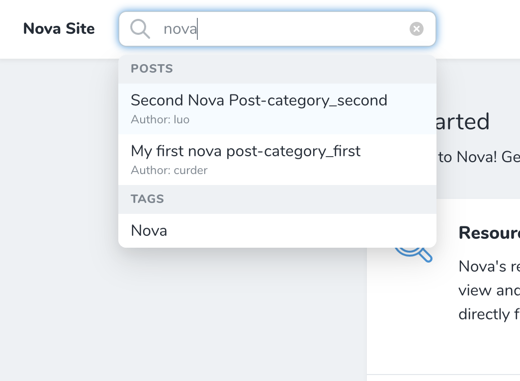 Nova 不仅允许在特定的资源和关系中搜索,还可以使用 Nova 管理面板中顶部导航栏的全局搜索框对所有资源进行全局搜索: