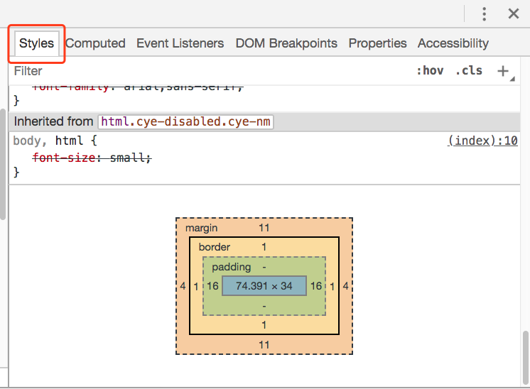 依然是Element面板上选中元素后,在右侧的Styles下面拉倒最下面找到它。