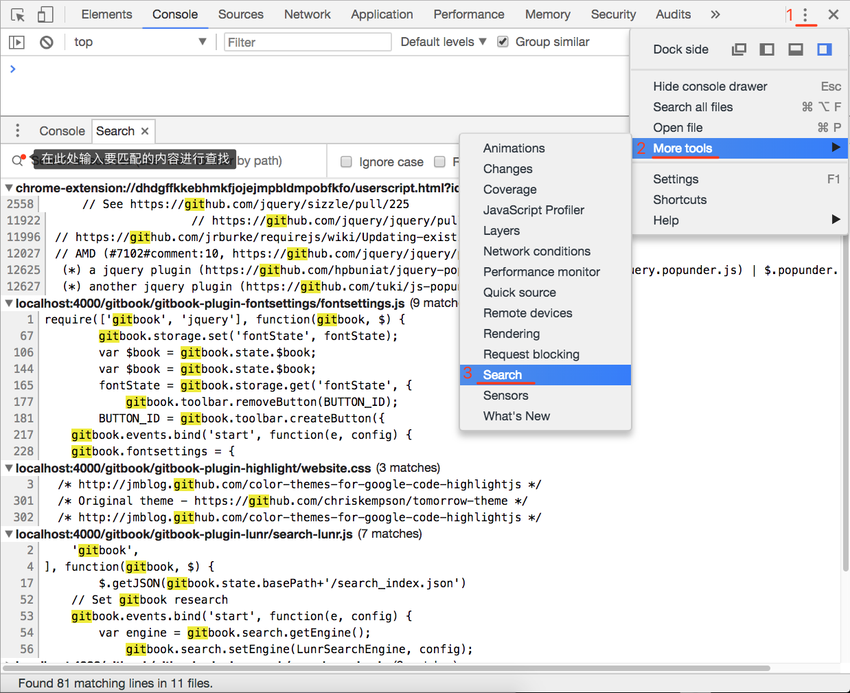 通过过滤条件过滤出自己想要搜索的内容所包含的资源文件以及资源文件所在行。