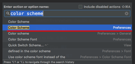 按住快捷键Command + Shift + a 输入Color Scheme如下图。