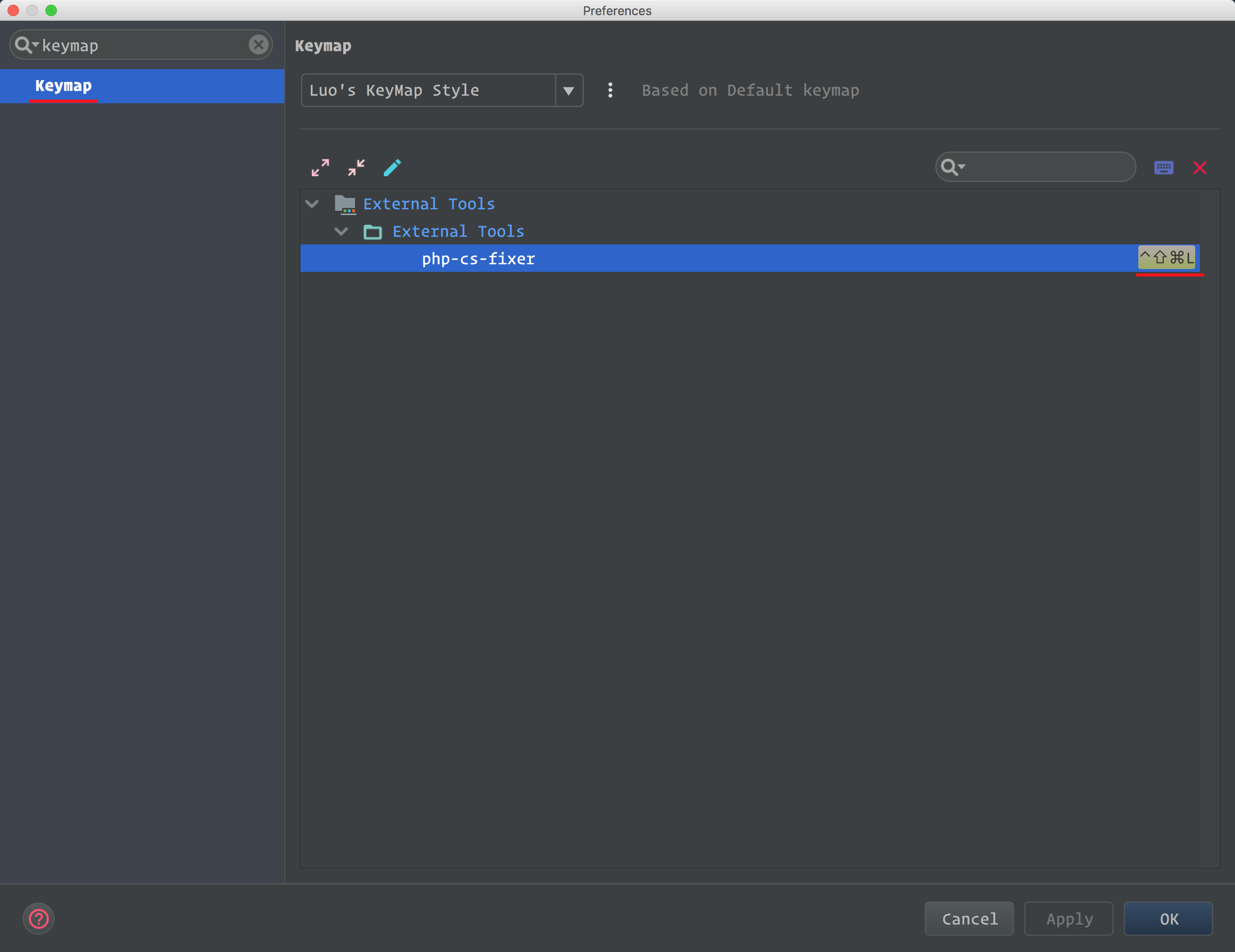 Preferences -> keymap -> 搜索php-cs-fixer -> 右键点击Add Keyboard Shortcut